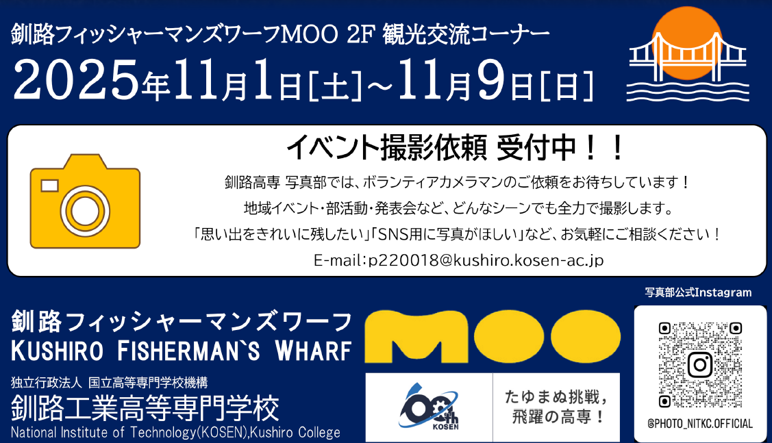 2階観光交流コーナーにて「釧路高専写真展」を開催いたします。