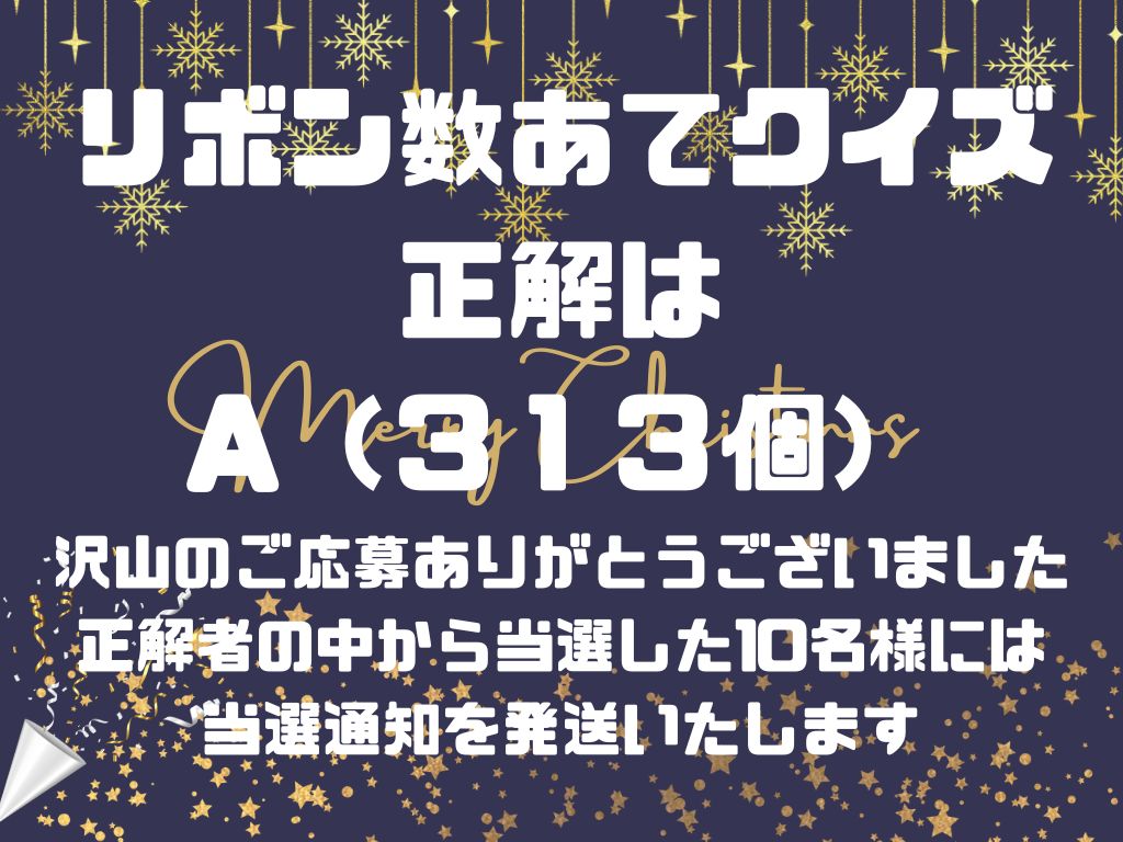 クリスマスツリーリボン数あてクイズの正解はA(313個)でした。