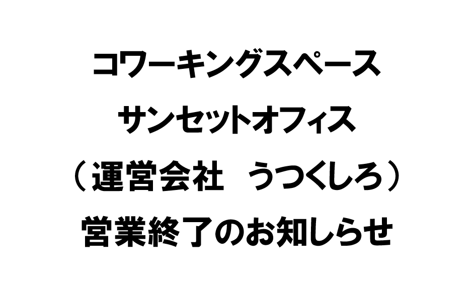 MOO5階コワーキングスペース「サンセットオフィス」(運営会社うつくしろ)は3月31日をもちまして営業を終了いたしました。