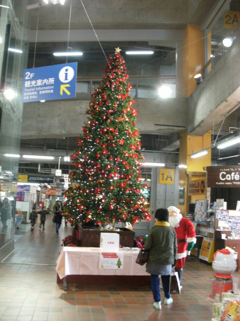 1階・中央エレベーター前の吹き抜けに設置された巨大なクリスマスツリーには