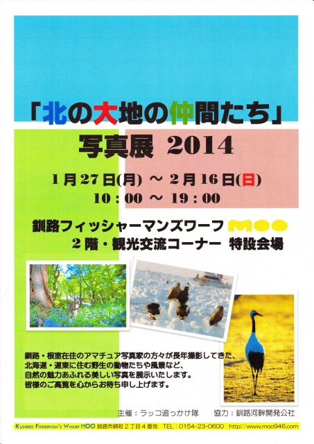 Home > インフォメーション > 【イベントのご案内】1月27日(月)~2月16日(日) 2階・観光交流コーナー 「『北の大地の仲間たち』写真展2014」