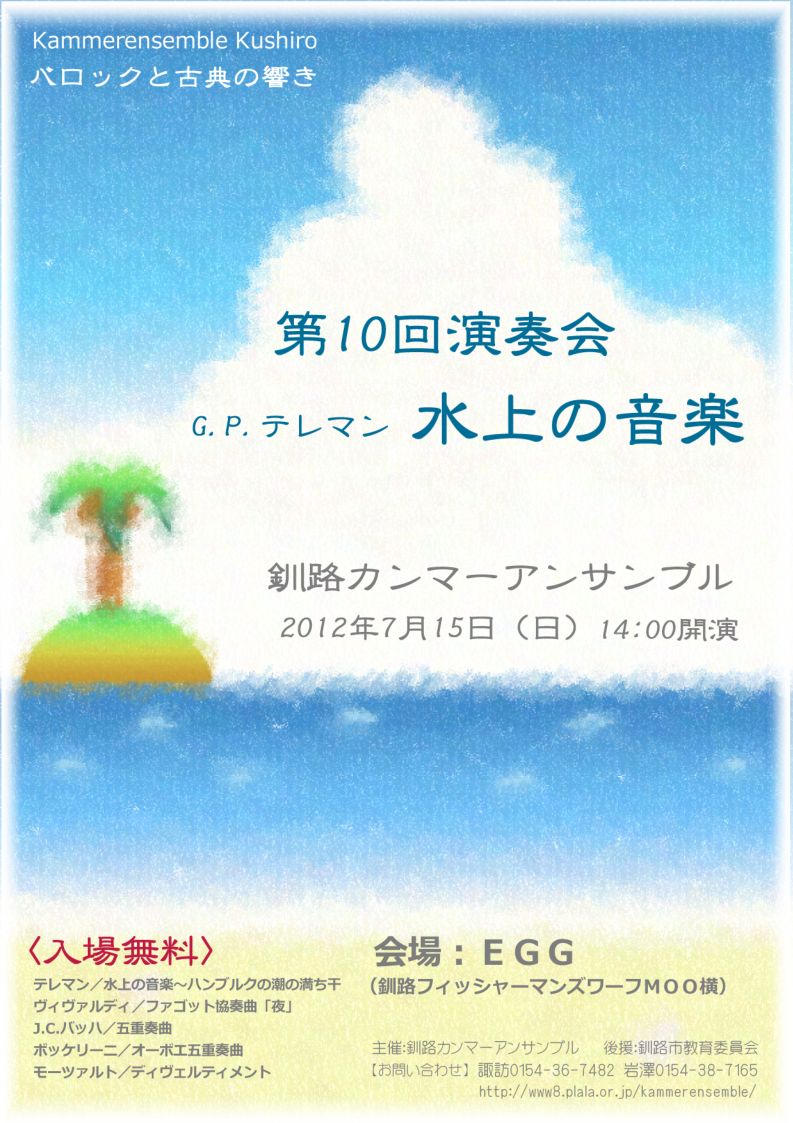 7月15日(日)14:00~EGG特設ステージにて「釧路カンマーアンサンブル 第10回演奏会『水上の音楽』」を開催いたします。