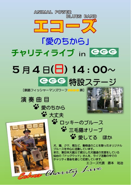 【イベントのご案内】5月4日(土)14:00~ EGG特設ステージ 「エコーズ『愛のちから』チャリティライブ in EGG」