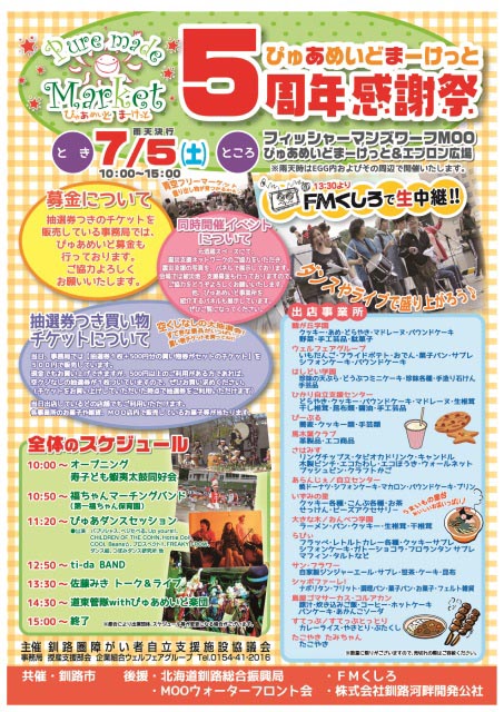 【イベントのご案内】7月5日(土) MOO前エプロン広場「ぴゅあめいどまーけっと 5周年感謝祭」
