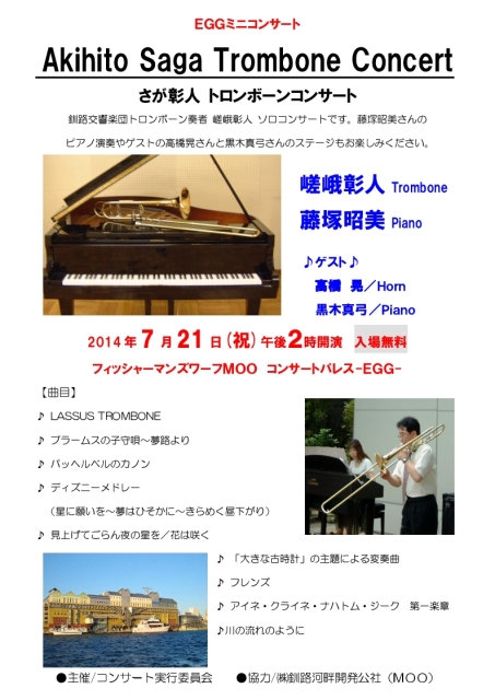 【イベントのご案内】7月21日(月・祝)14:00~ EGG特設ステージ 「さが彰人 トロンボーンコンサート」
