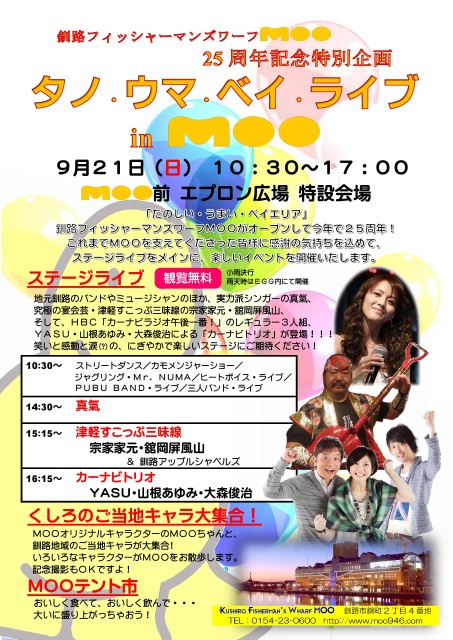 「釧路フィッシャーマンズワーフMOO 25周年記念特別企画『タノ.ウマ.ベイ・ライブ in MOO』」ポスター (PDFファイル)