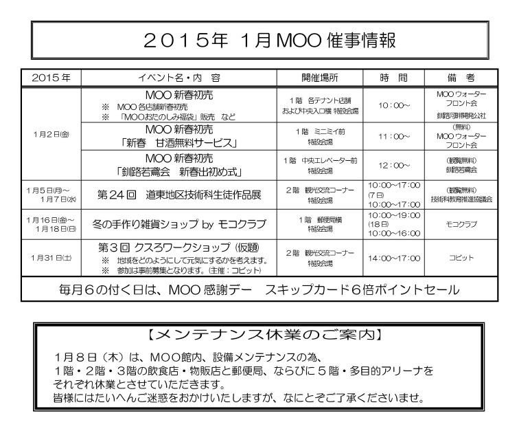 1月8日(木)は、MOO館内、設備メンテナンスの為、