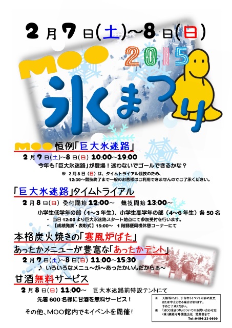 2月7日(土)・8日(日)の両日は「MOO氷まつり」にぜひお越しくださいませ。