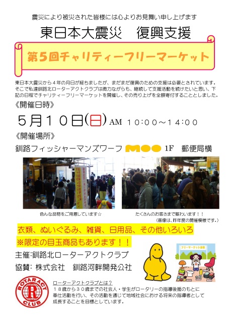 アクトクラブによる「東日本大震災 復興支援 第5回 チャリティフリーマーケット」を