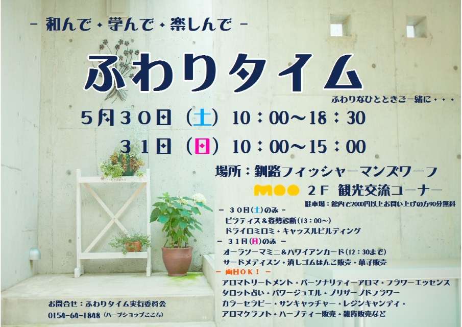 【イベントのご案内】5月30日(土)~31日(日) 2階・観光交流コーナー「ふわりタイム」