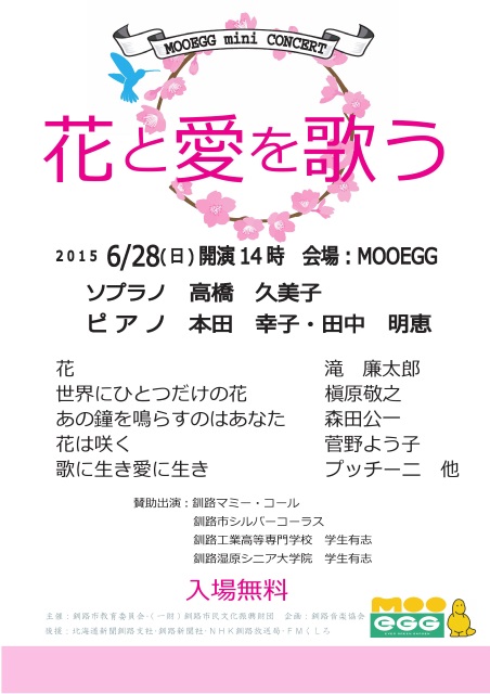 Home > インフォメーション > 【イベントのご案内】6月28日(日)14:00~ EGG特設会場「EGGミニコンサート『花と愛を歌う』」