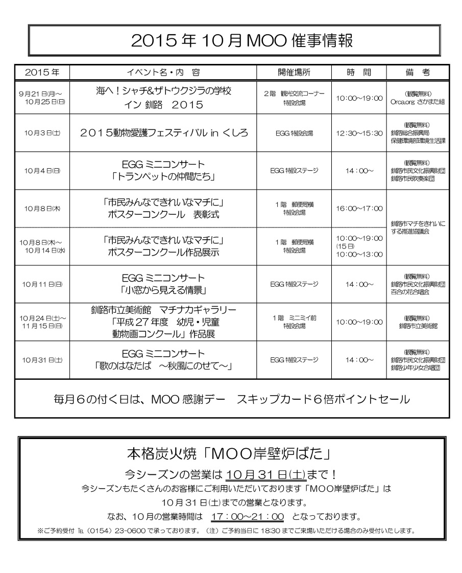 Home > インフォメーション > 10月のMOO/EGGのイベント情報のご案内 [追加と修正]