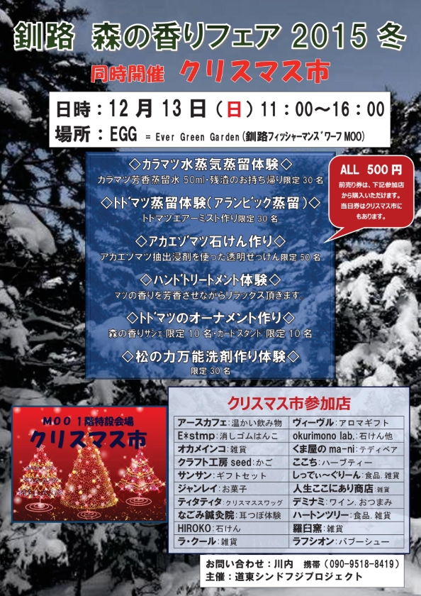 【イベントのご案内】12月13日(日)11:00~16:00 EGG特設会場「釧路 森の香りフェア 2015冬』