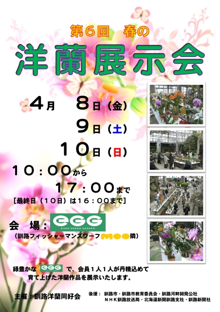 4月8日(金)から10日(日)までの3日間、EGG特設会場におきまして「釧路洋蘭同好会