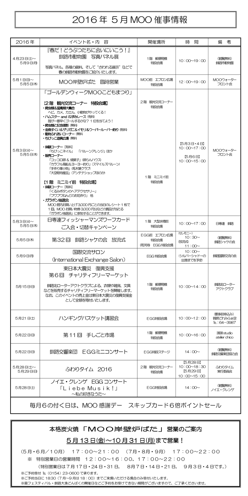 5月のMOOとEGGのイベント情報をご案内いたします。