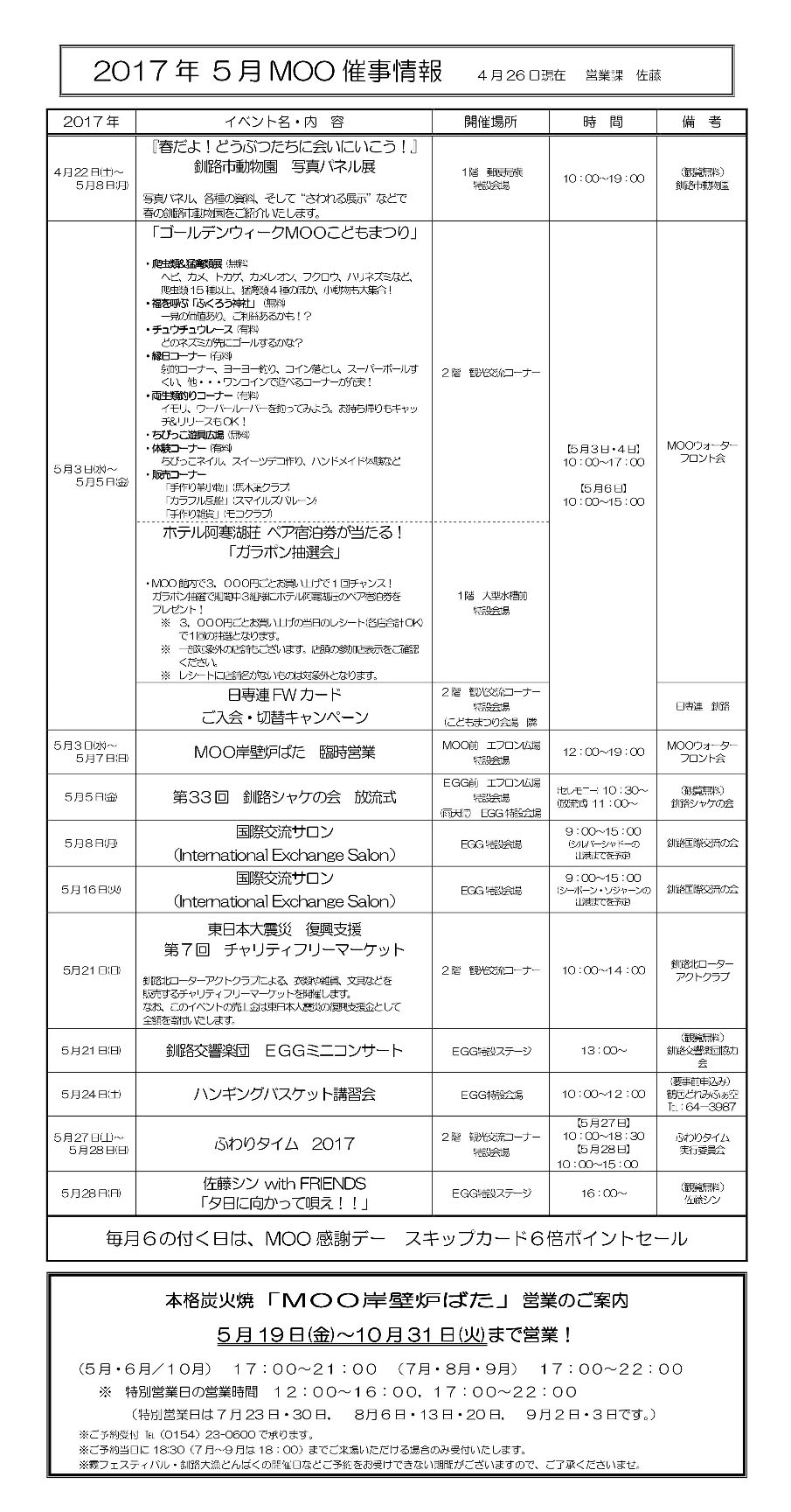 5月のMOOとEGGのイベント情報をご案内いたします。