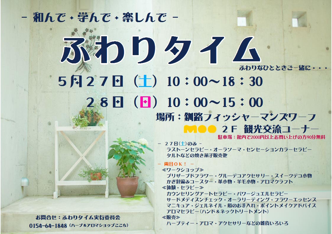 【イベントのご案内】5月27日(土)・28日(日) 2階・観光交流コーナー「ふわりタイム」