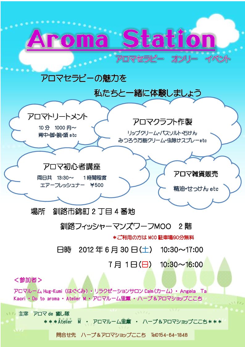 6月30日(土)と7月1日(日)の2日間、MOO2階・観光交流コーナーにて「Aroma Station(アロマ・ステーション)」を開催いたします。