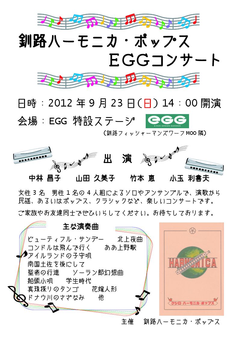 「釧路ハーモニカ・ポップス EGGコンサート」を開催いたします。