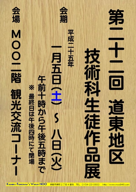 【イベントのご案内】1月5日(土)~8日(火)「第22回道東地区技術科生徒作品展」