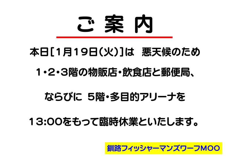 Home > インフォメーション > 1月19日(火) 臨時休業のご案内