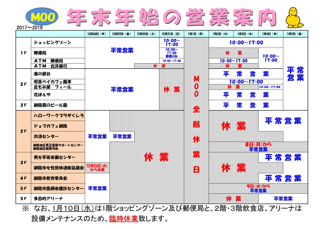 Home > インフォメーション > 釧路フィッシャーマンズワーフMOOの年末年始の営業についてご案内いたします。