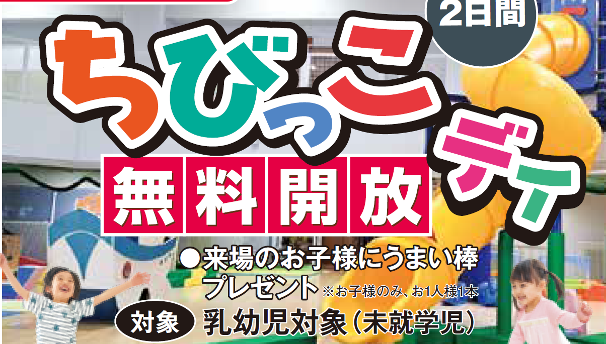 2月1日(土)2日(日)はくしろ冬まつり協賛イベント「ちびっこ無料開放ディ」を開催いたします。対象 乳幼児 時間 10時~15時来場されたお子様に「うまい棒」1本をプレゼント!皆様のご来場心よりお待ちしております。