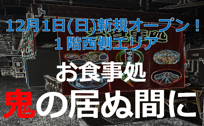 1階西側エリアにお食事処「鬼の居ぬ間に」がオープンいたします。
