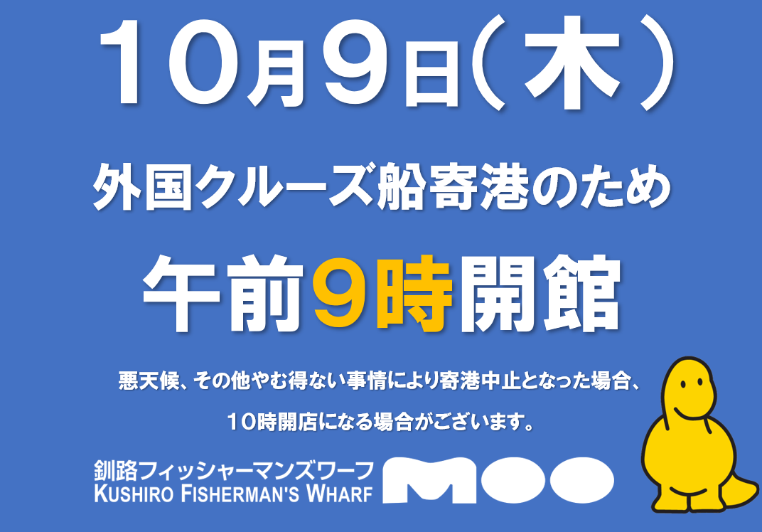 10月9日㈭ 午前9時開館