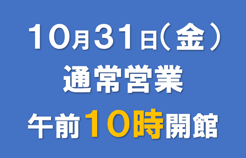 悪天候のため10月31日㈮に予定されておりました外国クルーズ船の寄港中止が決定いたしましたのでMOOは10時開館となります。