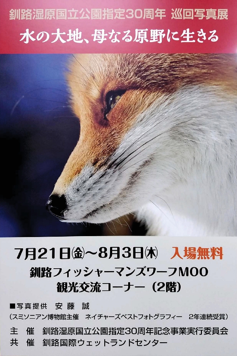 「釧路湿原国立公園指定30周年記念巡回写真展 ~水の大地、母なる原野に生きる~」を