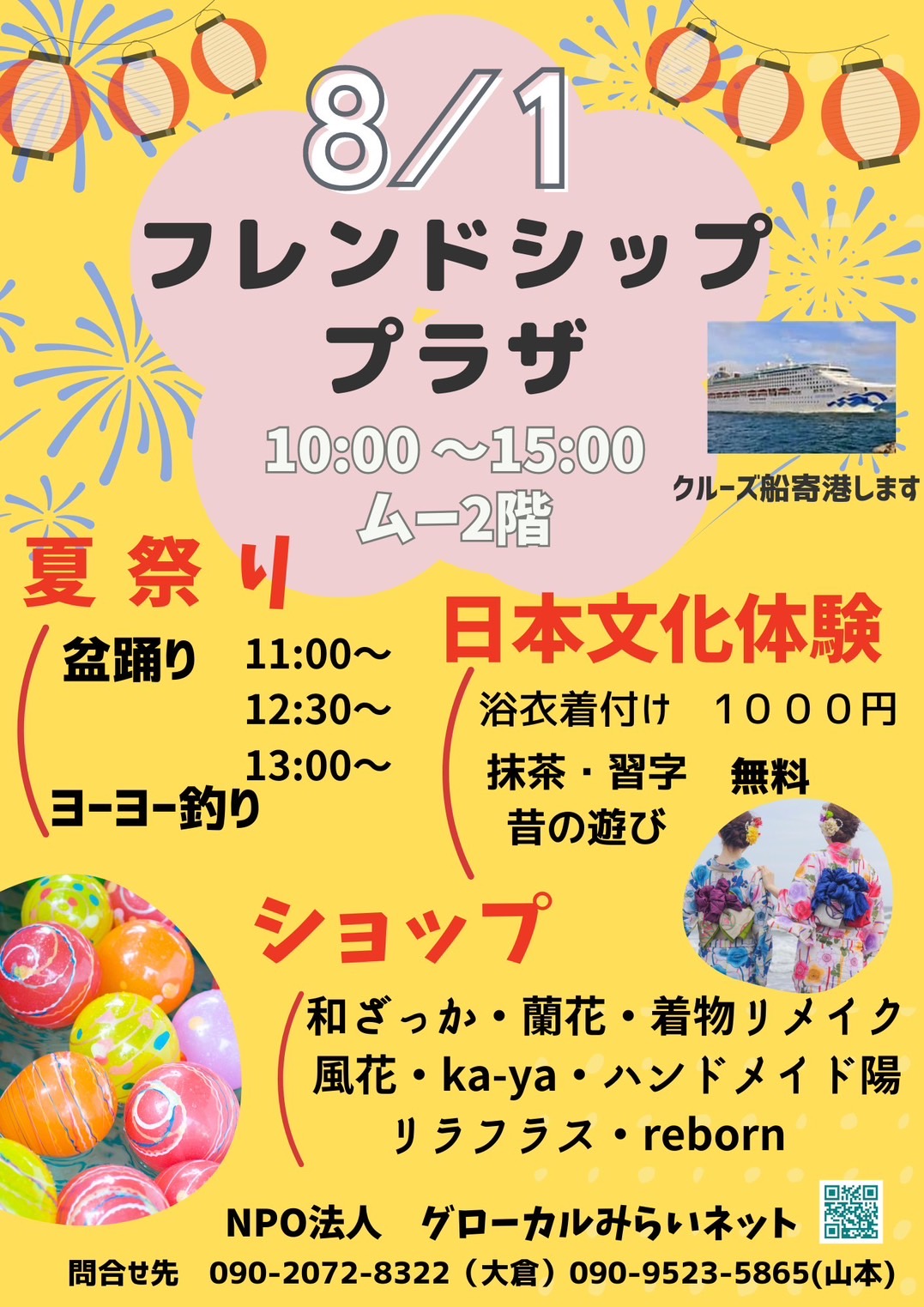 「夏祭り」「日本文化体験」「ショップ」を予定しております。
