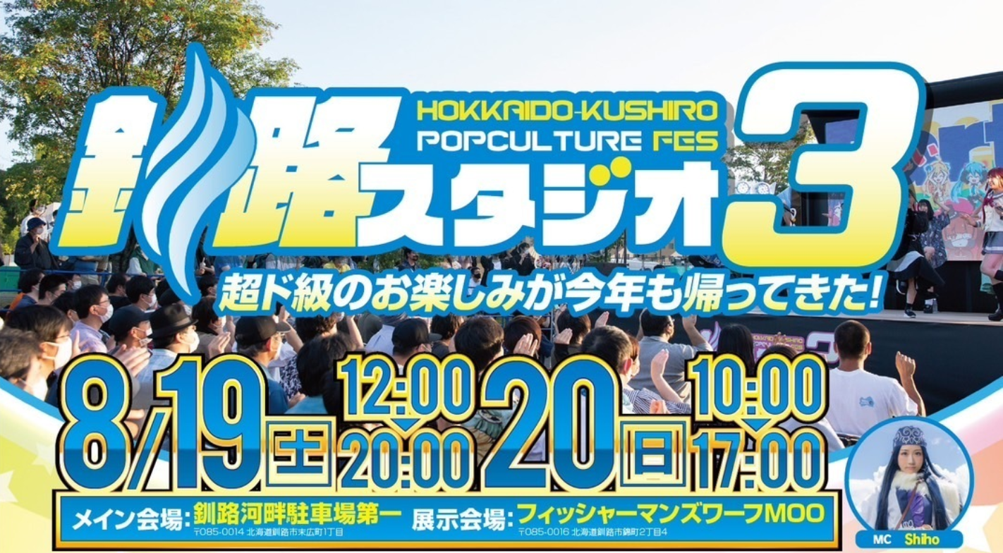 日時 8月19日 12時~20時 20日 10時~17時メイン会場 釧路河畔第一駐車場展示会場 フィッシャーマンズワーフMOO詳細につきましては釧路スタジオホームページをご確認ください。https://kushiro-studio.net/