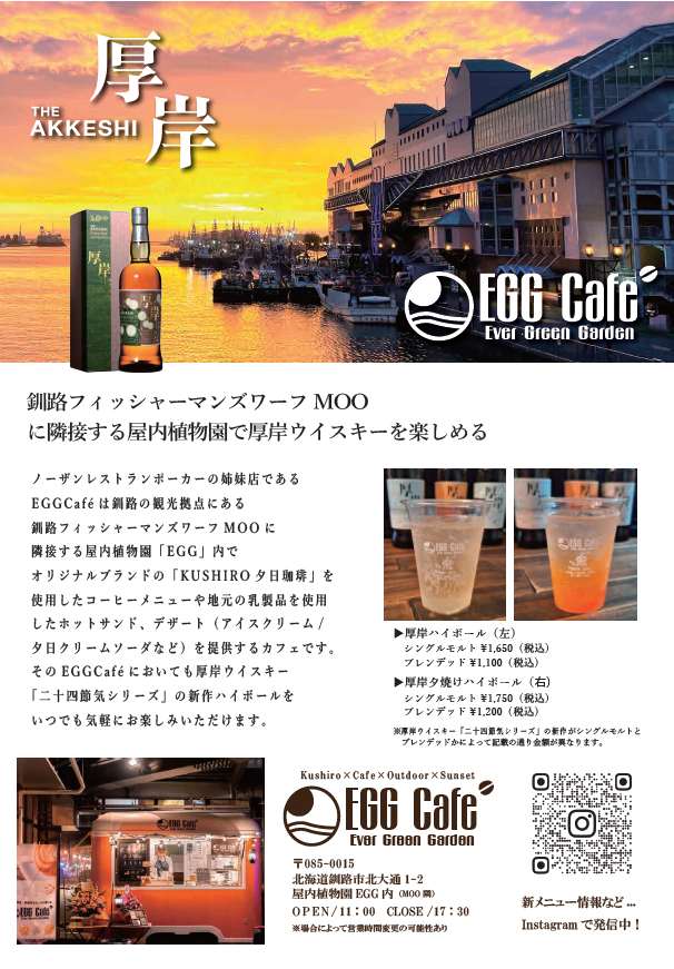厚岸ウイスキー「二十四節気シリーズ」の新作ハイボールをいつでも気軽にお楽しみいただけます。厚岸ハイボール シングルモルト\1,650(税込)厚岸夕焼けハイボール シングルモルト\1,750(税込)