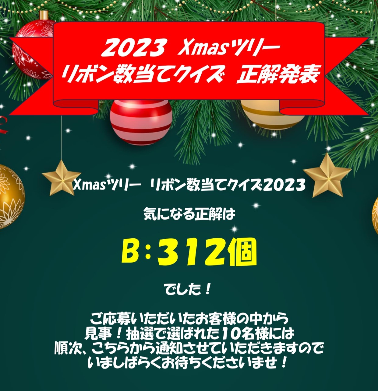 2023年クリスマスツリーリボン数当てクイズ正解を発表します! 見事、当選された10名様には当選通知を発送させていただきました。なお、通知は当選者に限らせていただきますので予めご了承くださいませ。 この度はたくさんのご応募、ありがとうございました!
