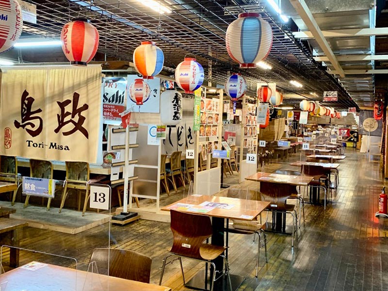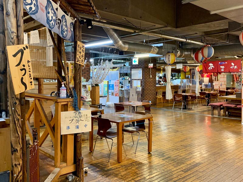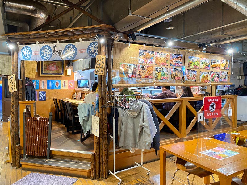 「釧路・港の屋台」の中であれば、テーブル席にも、各店のカウンターにも、全ての店舗がお客様のお席に出前いたします。