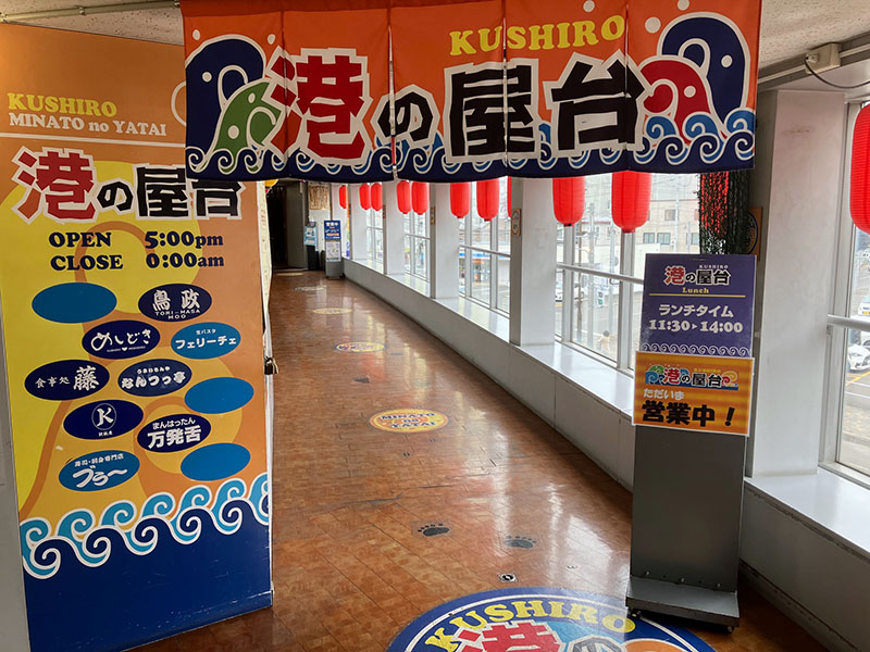 「釧路・港の屋台」は、港町・釧路ならではの新鮮な魚介類、釧路名物のザンギ、焼き鳥、中華料理、定食など、各店自慢の多彩なメニューを取り揃えて、お客様のお越しをお待ち申し上げております。